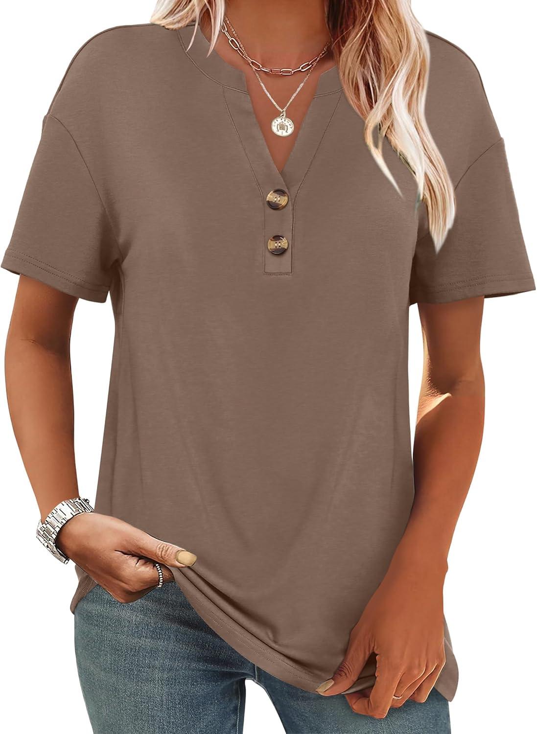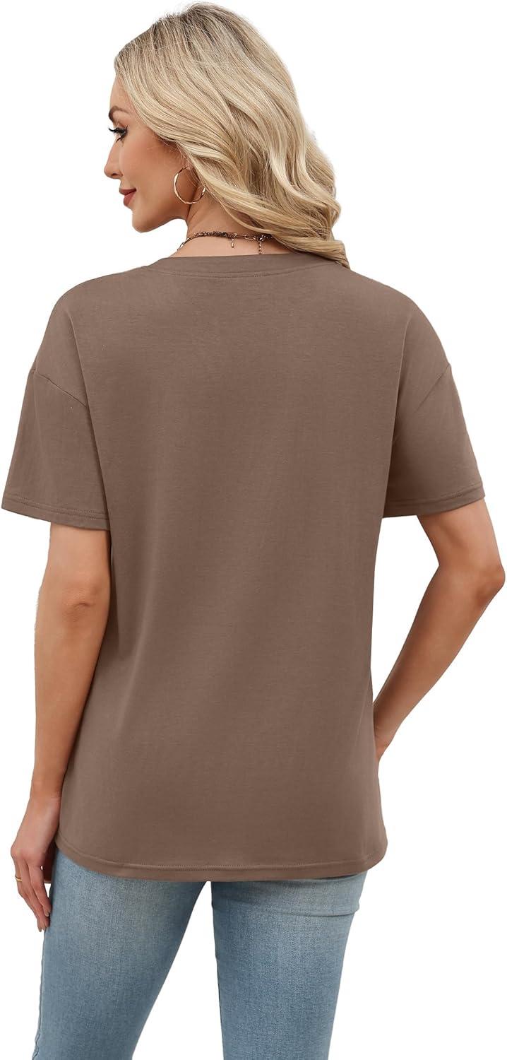 Womens Short Sleeve Tops Dressy Casual V Neck Oversized Summer Trendy Shirts Business Work Blouses(Coffee)