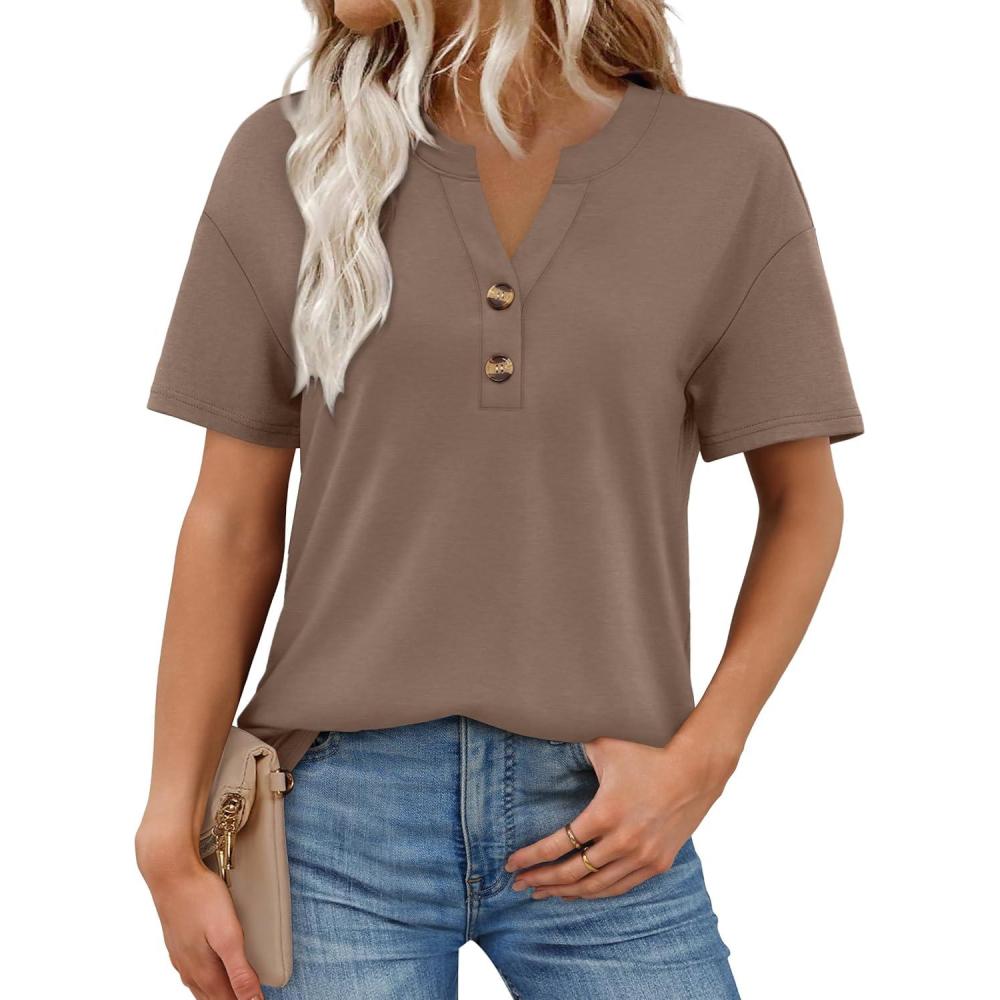 image:imageWomens Short Sleeve Tops Dressy Casual V Neck Oversized Summer Trendy Shirts Business Work BlousesCoffee