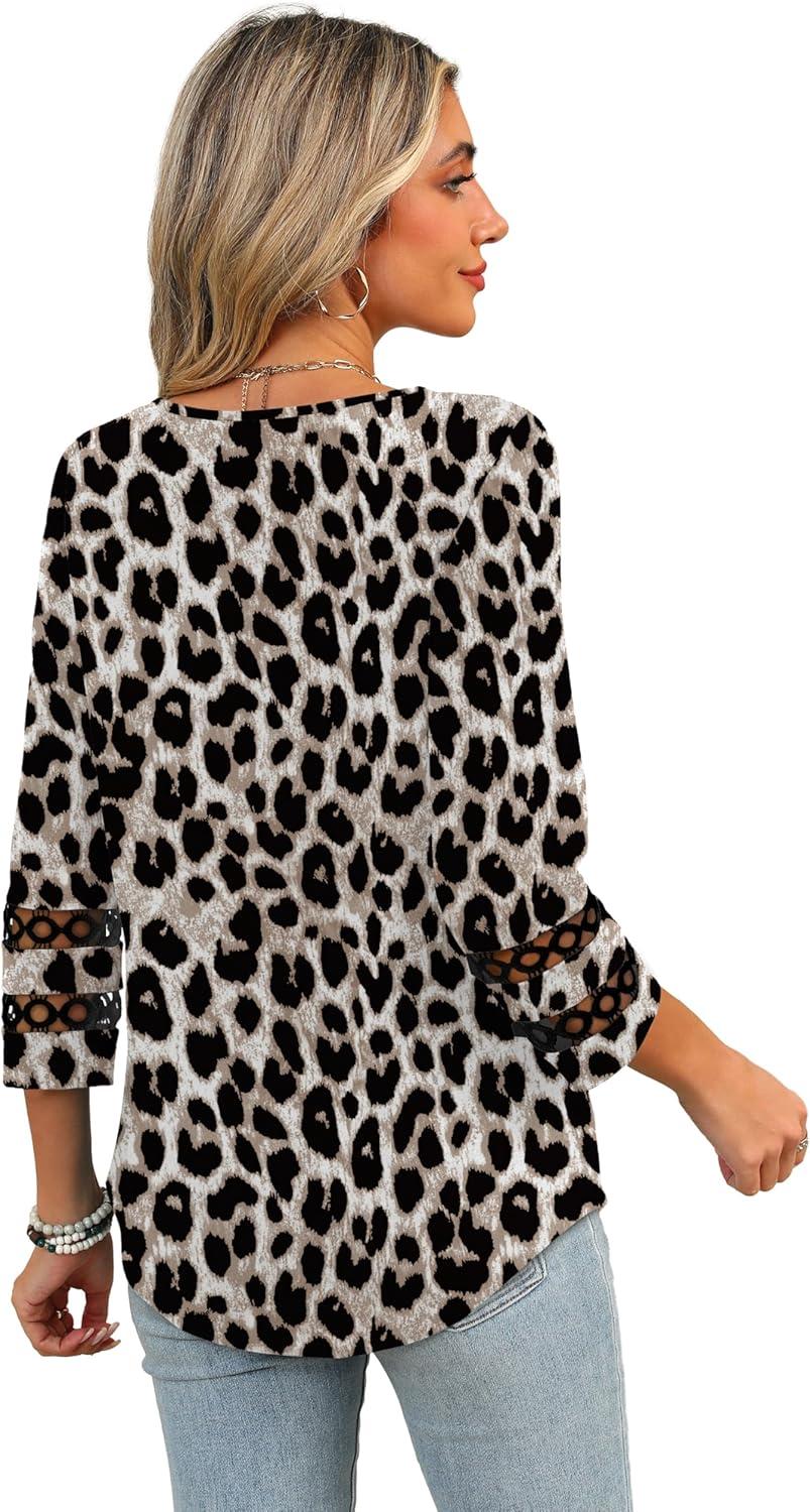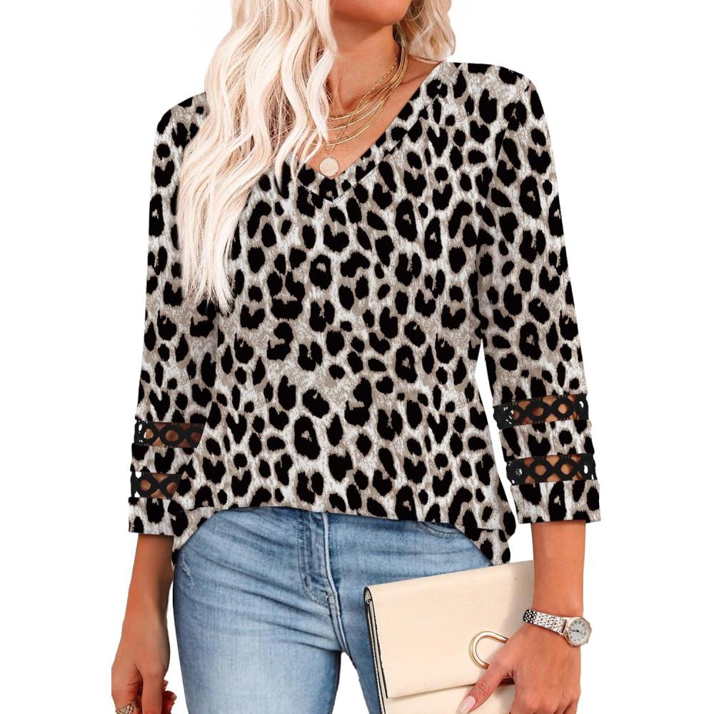 XIEERDUO 3/4 Length Sleeve Womens Tops Dressy Casual Blouses for Women 2026 Trendy V Neck T Shirts Summer Clothes(Z Brown Leopard)