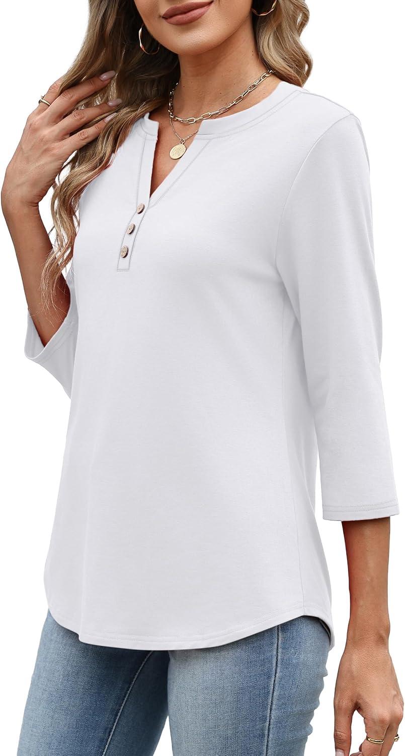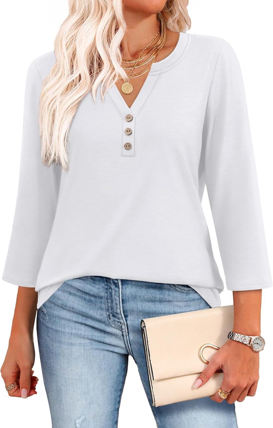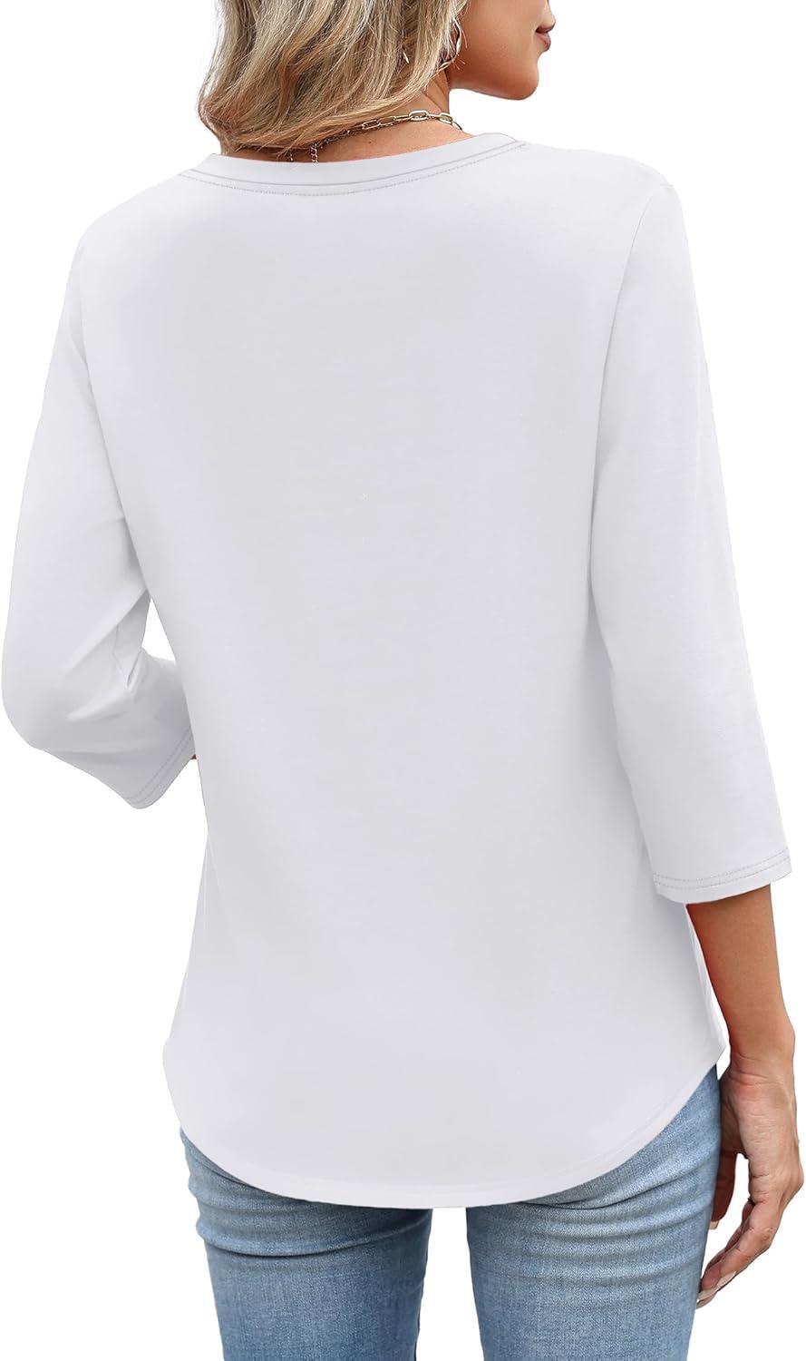XIEERDUO 3/4 Length Sleeve Womens Tops Fashion Clothing V Neck T Shirts Dressy Blouses Business Casual Outfits Tunic Tops(F-white)