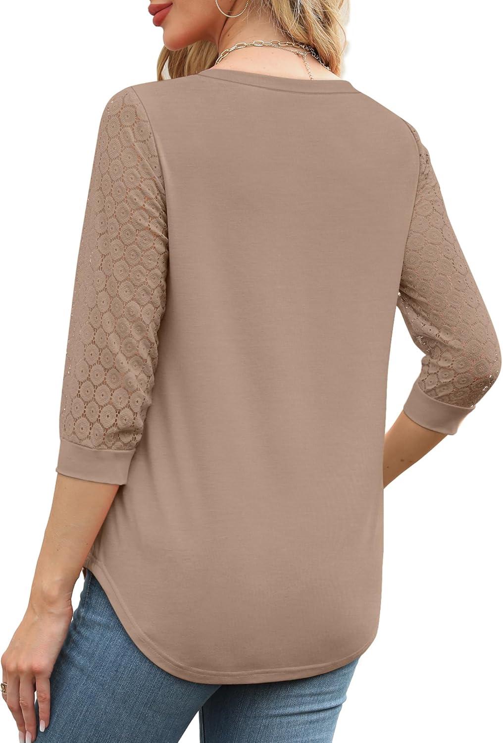 XIEERDUO 3/4 Length Sleeve Womens Tops V-Neck Lace Tunic Tops Business Casual Outfits Work Blouses Dressy 2026(Khaki)