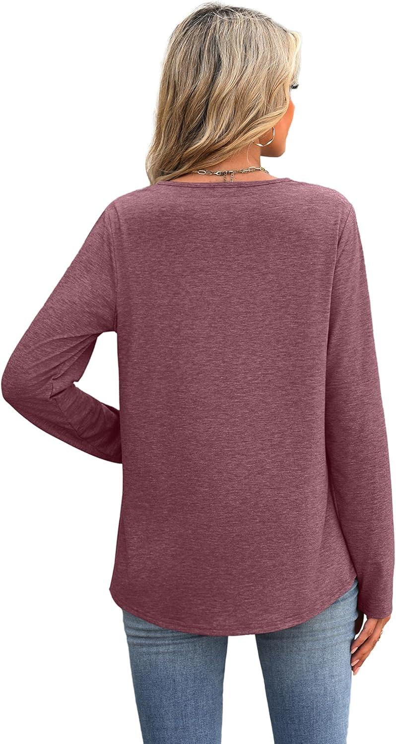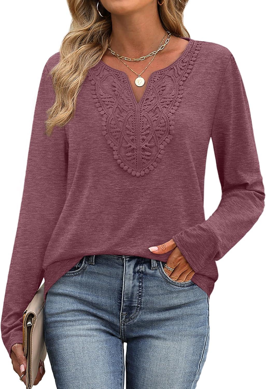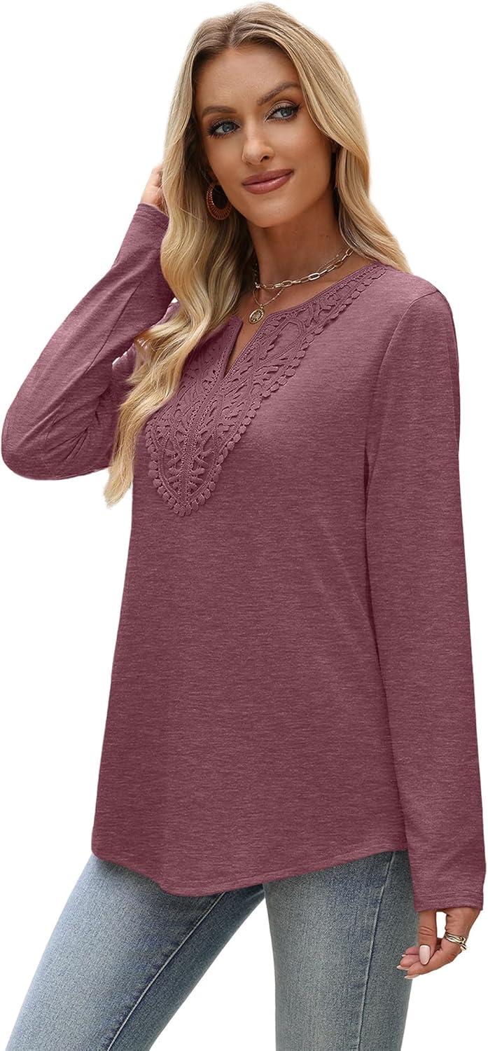 XIEERDUO Boho Tops for Women Blouses Dressy Casual V Neck Long Sleeve Shirts Fall Outfits Trendy Vacation Clothes(Wine Red)