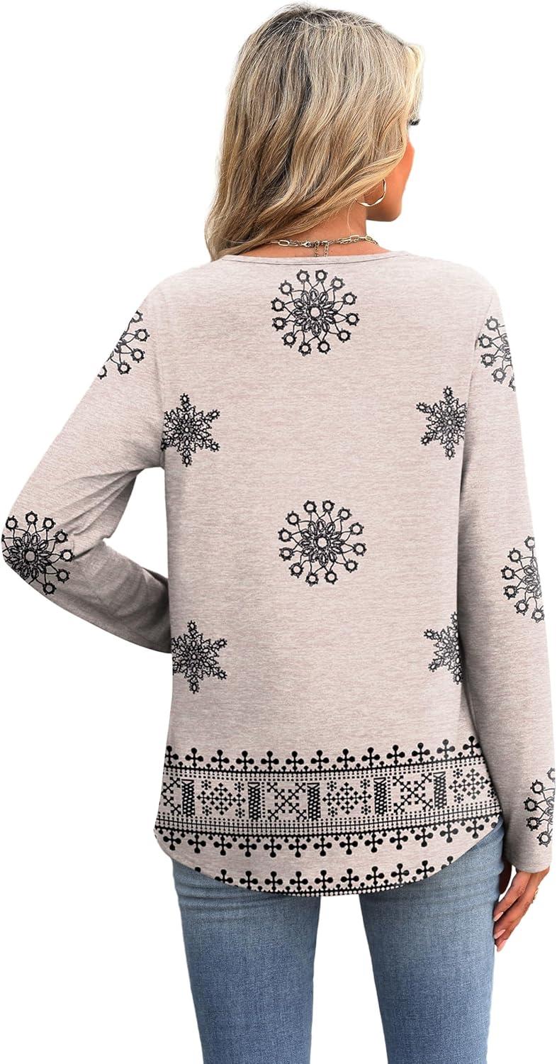 XIEERDUO Boho Tops for Women Blouses Dressy Casual V Neck Long Sleeve Shirts Fall Outfits Trendy Vacation Clothes(Z Grey Printed)