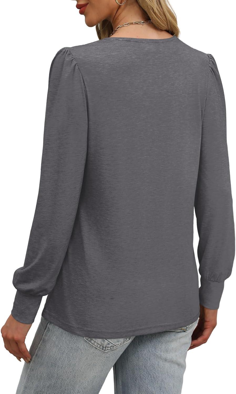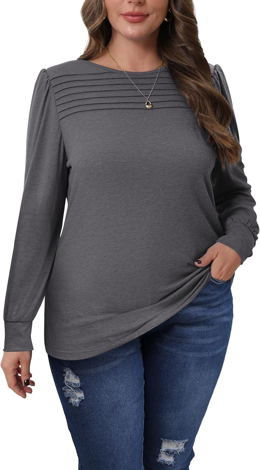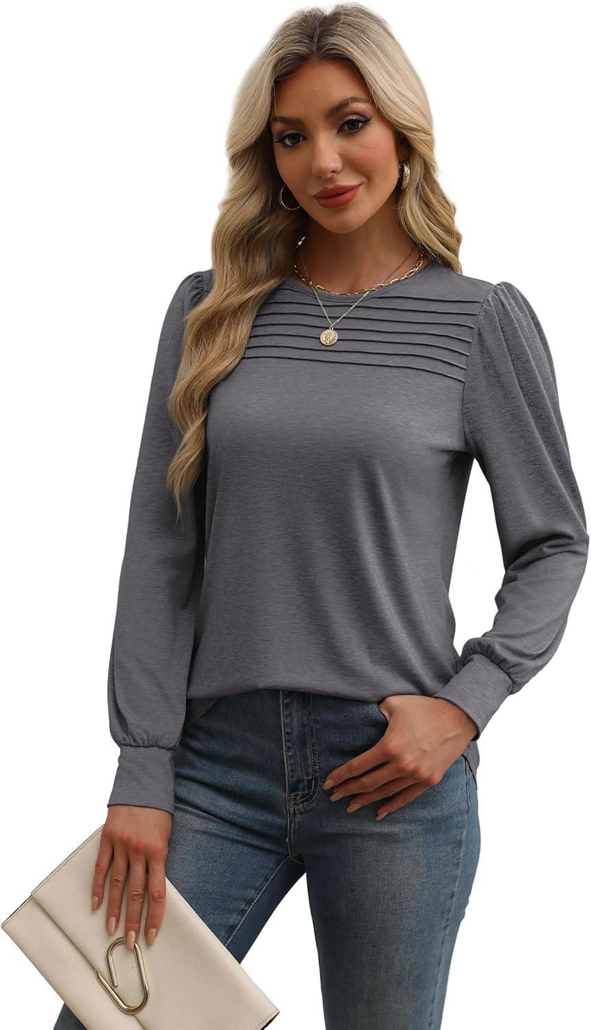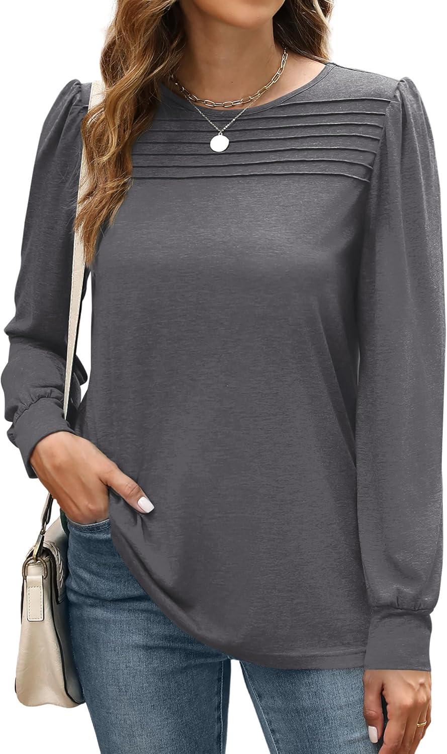 XIEERDUO Long Sleeve Shirts for Women 2024 Fall Outfits Trendy Pleated Loose Fit Casual Tunics to wear with Leggings(Grey)