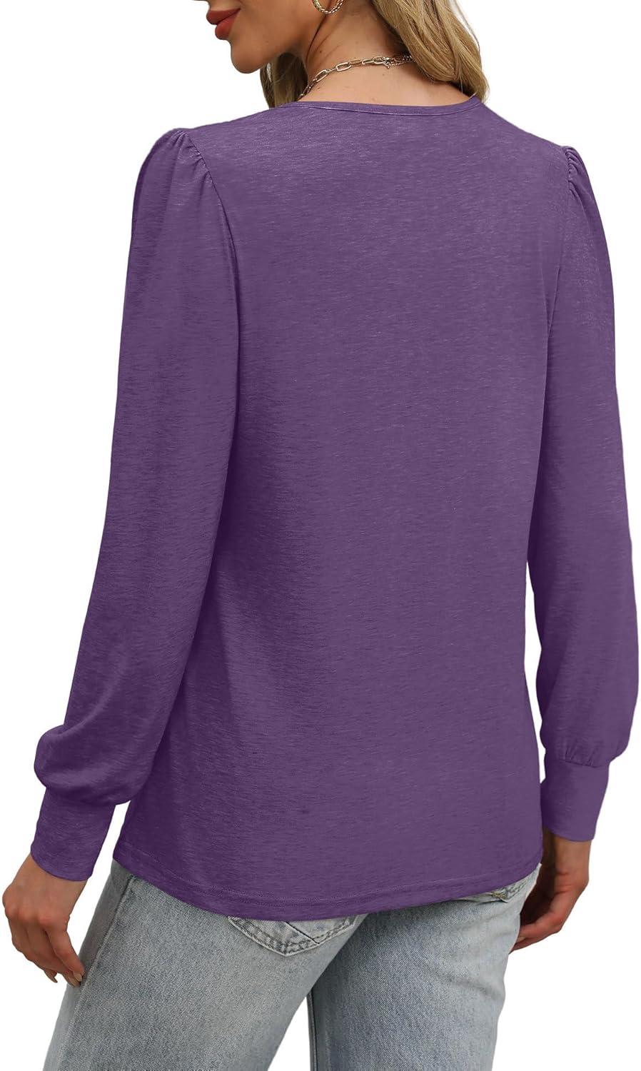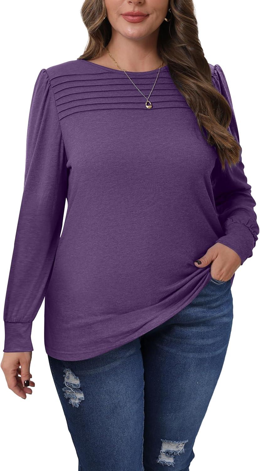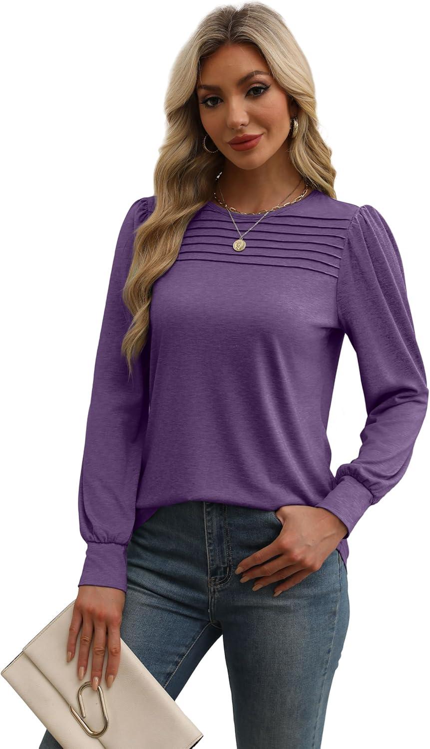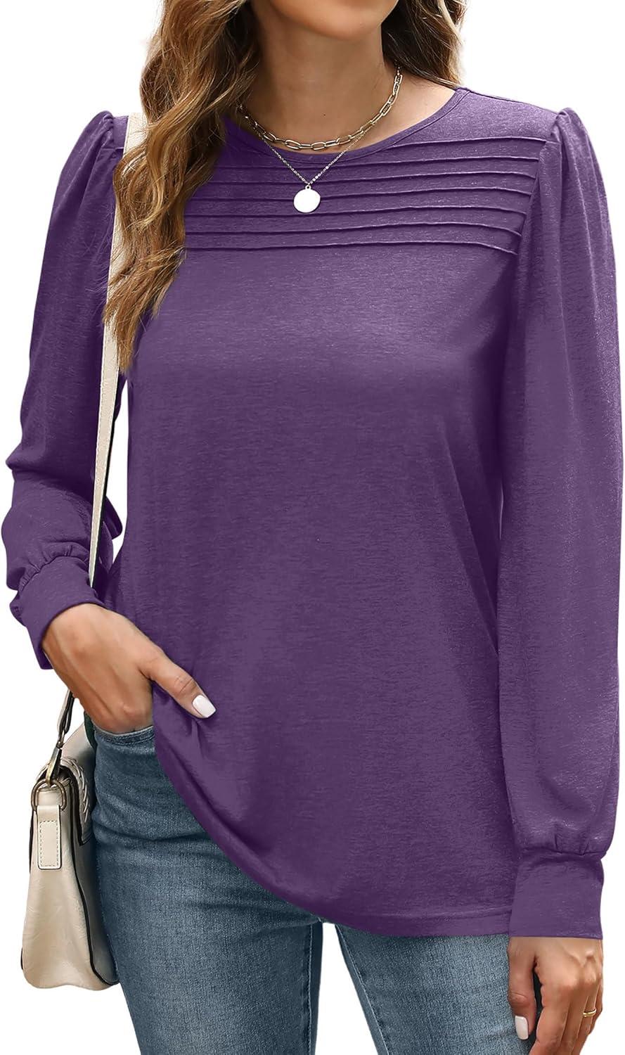 XIEERDUO Long Sleeve Shirts for Women 2024 Fall Outfits Trendy Pleated Loose Fit Casual Tunics to wear with Leggings(Purple)