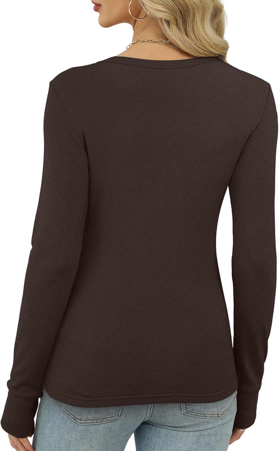 XIEERDUO Long Sleeve Thermal Shirt for Women Fleece Slim Fit Tops Crewneck Basic T-Shirts with Thumb Holes Fall Fashion 2025(Chocolate Brown)