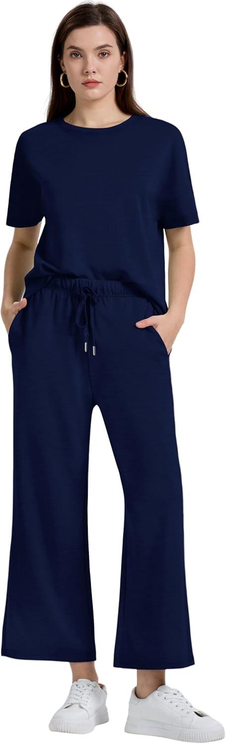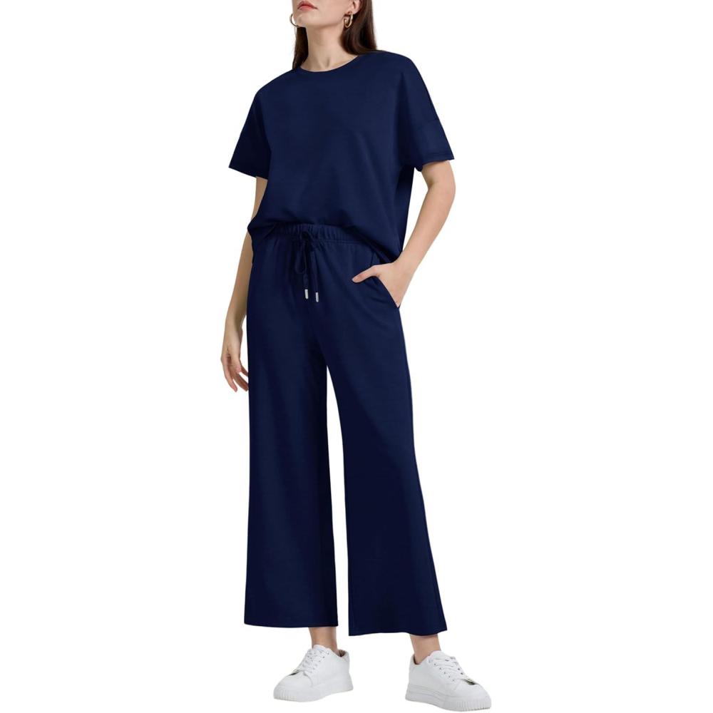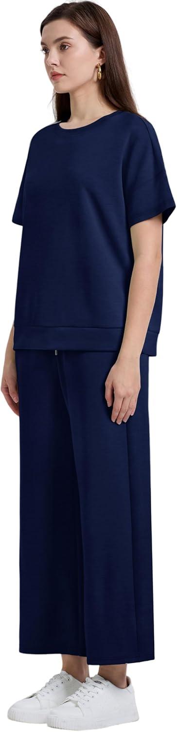XIEERDUO Women Two Piece Lounge Sets 2 PC Travel Outfits Summer Fashion Tracksuits Spring Trendy Loungewear Mock Neck Short Batwing Sleeve Track Suits Women’s Vacation Cruise Resort Wear Blue M