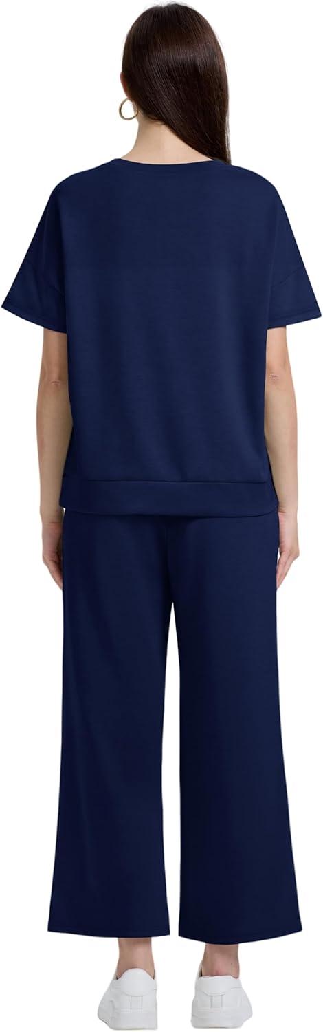imageXIEERDUO Women Two Piece Lounge Sets 2 PC Travel Outfits Summer Fashion Tracksuits Spring Trendy Loungewear Mock Neck Short Batwing Sleeve Track Suits Womens Vacation Cruise Resort Wear Blue M