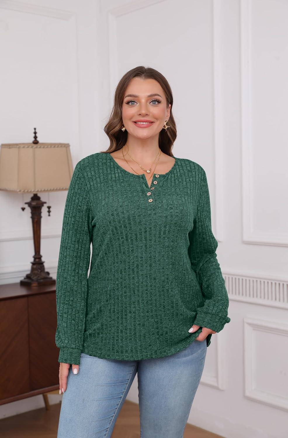 XIEERDUO Sweater for Women Long Sleeve Henley Shirts Fall Tunic Tops to Wear with Leggings Crew Neck Outfits Trendy 2025(Dark Green)