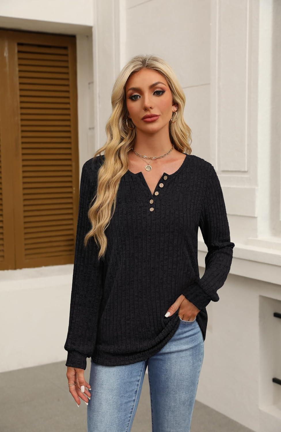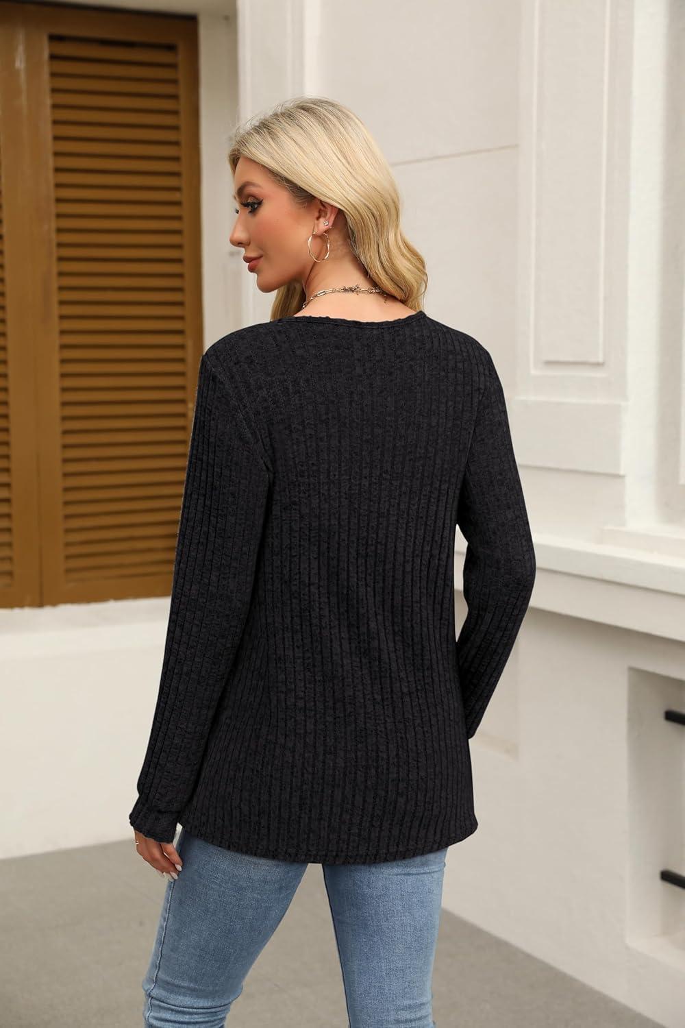 XIEERDUO Sweater for Women Long Sleeve Henley Shirts Tunic Tops to Wear with Leggings crew neck Sweaters Trendy 2024(Black)