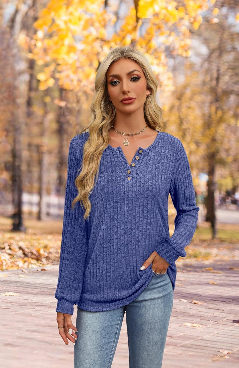 XIEERDUO Sweater for Women Winter Clothing Long Sleeve Shirts Fall Fashion Must Haves Comfiest Airport Outfits Trendy(Dark Blue)