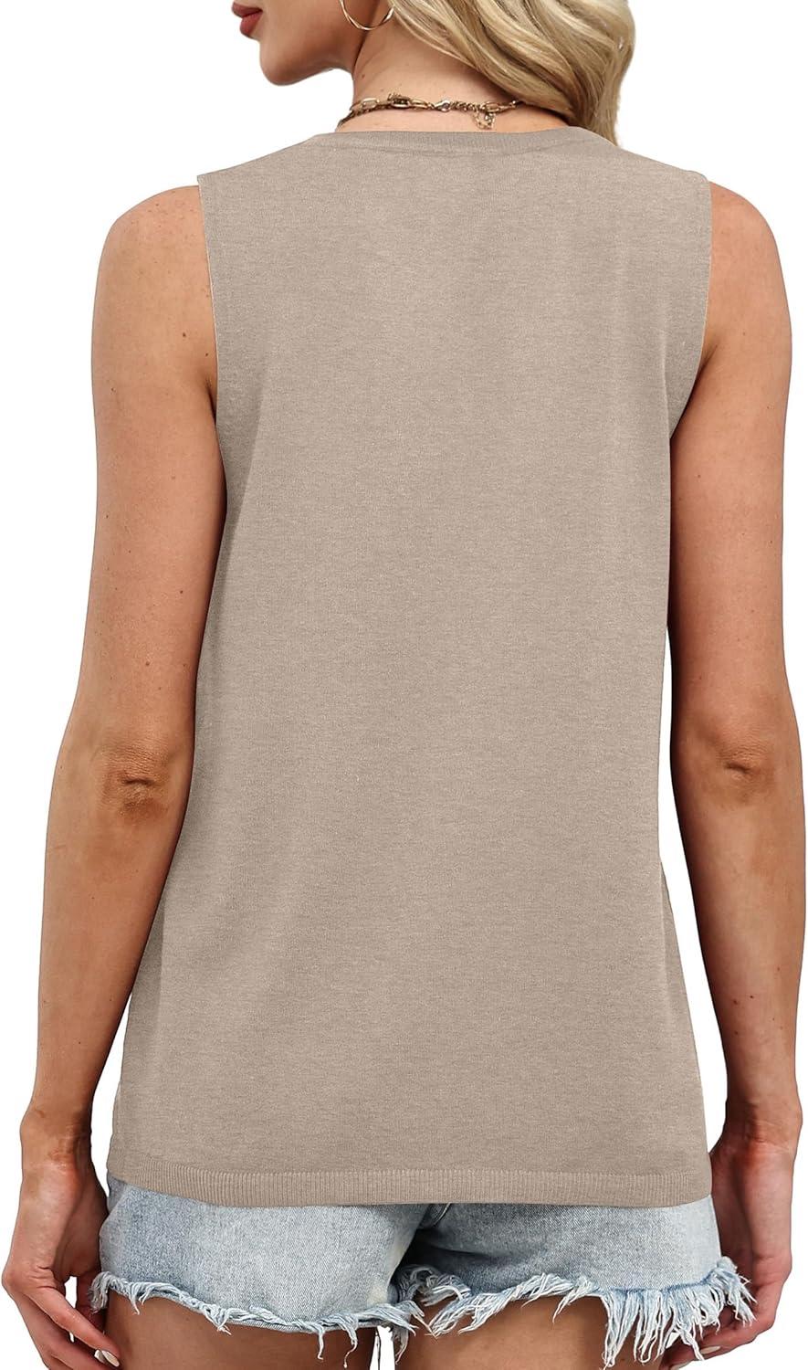 XIEERDUO Sweater Vest Women Fall Clothes Crewneck Sleeveless Tops Ribbed Knit Tank Tops Business Casual Work Blouses(Khaki)