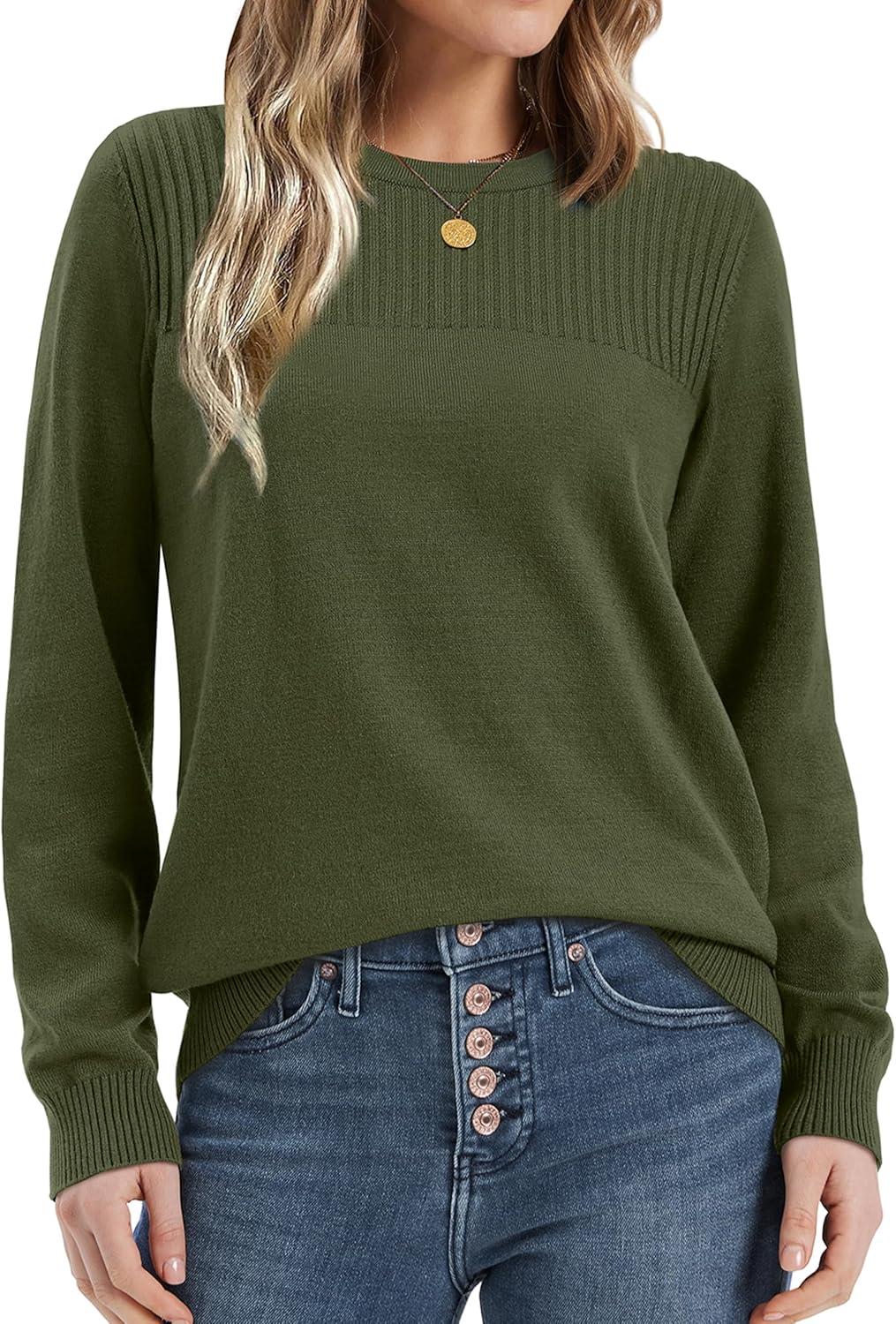 XIEERDUO Sweaters for Women Long Sleeve Shirts Round Neck Ribbed Knit Pullover Sweater Fashion Clothing(Green)