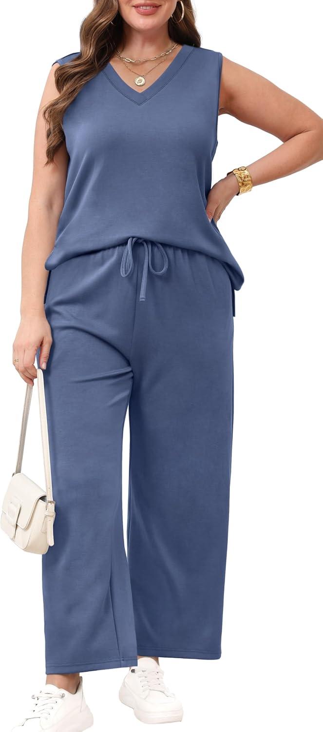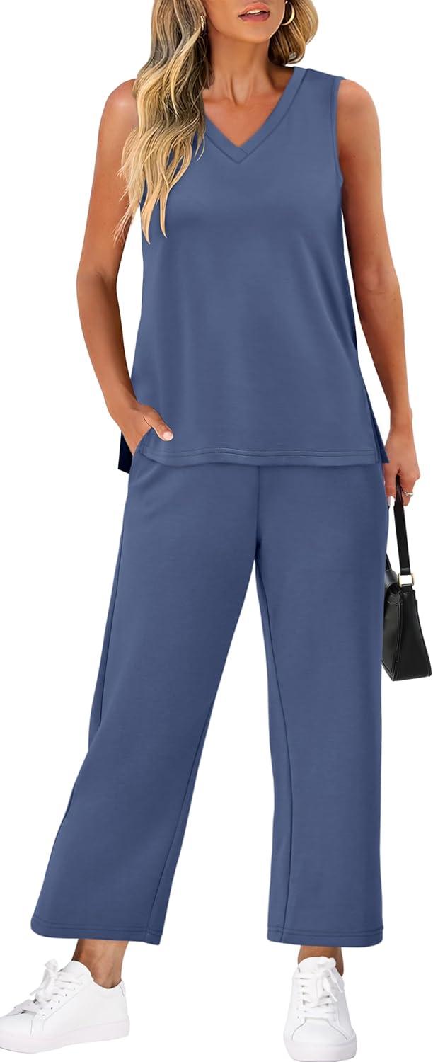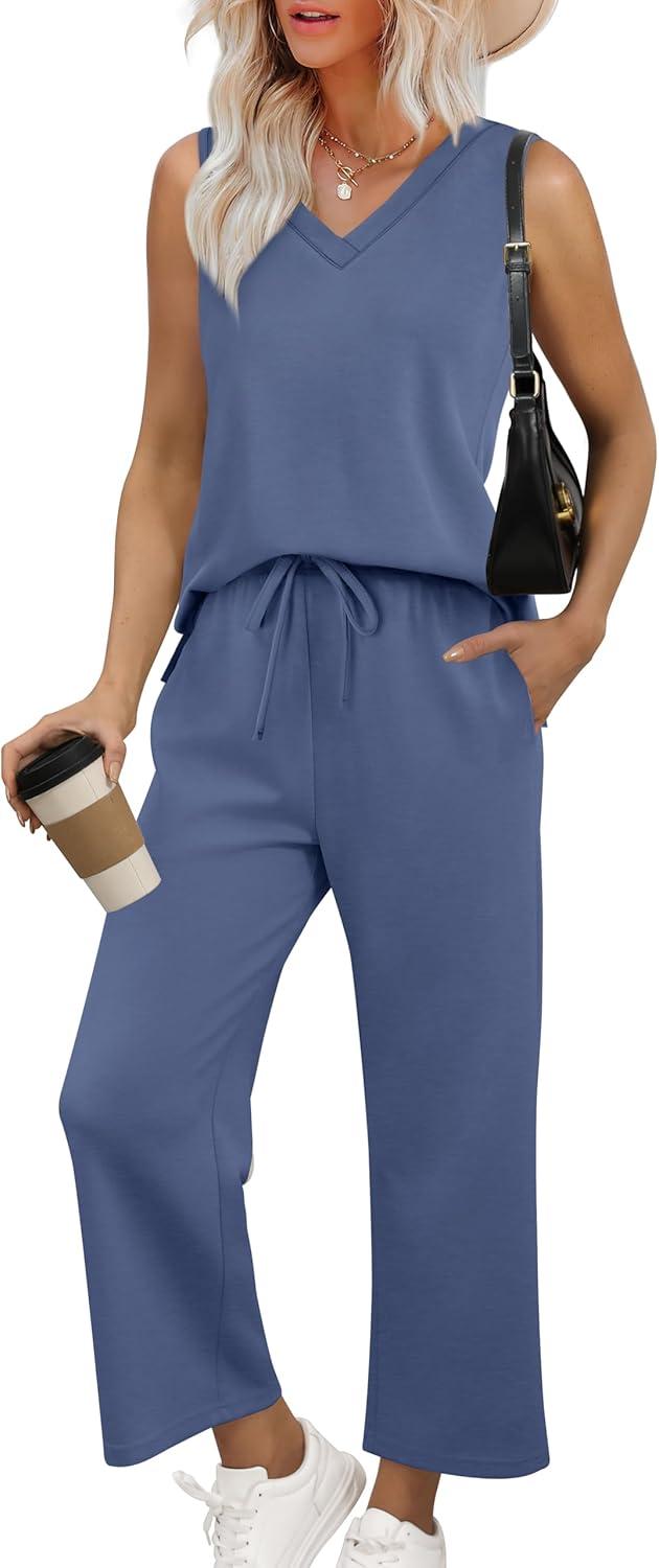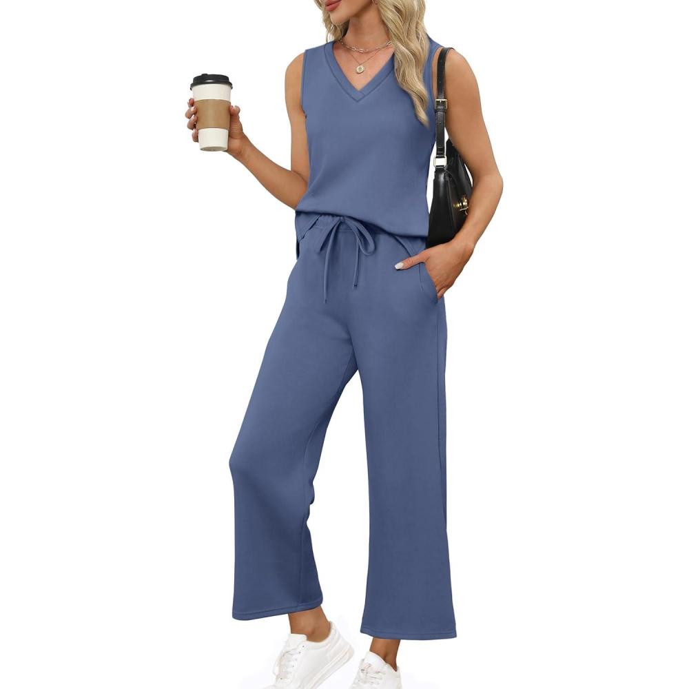 Don’t break the bank! Get the XIEERDUO Two Piece Sets for Women Summer Vacation Travel Outfits V Neck Lounge Matching Sets(Dusty Dusty Blue) you want at a price you can afford during our markdown sale.