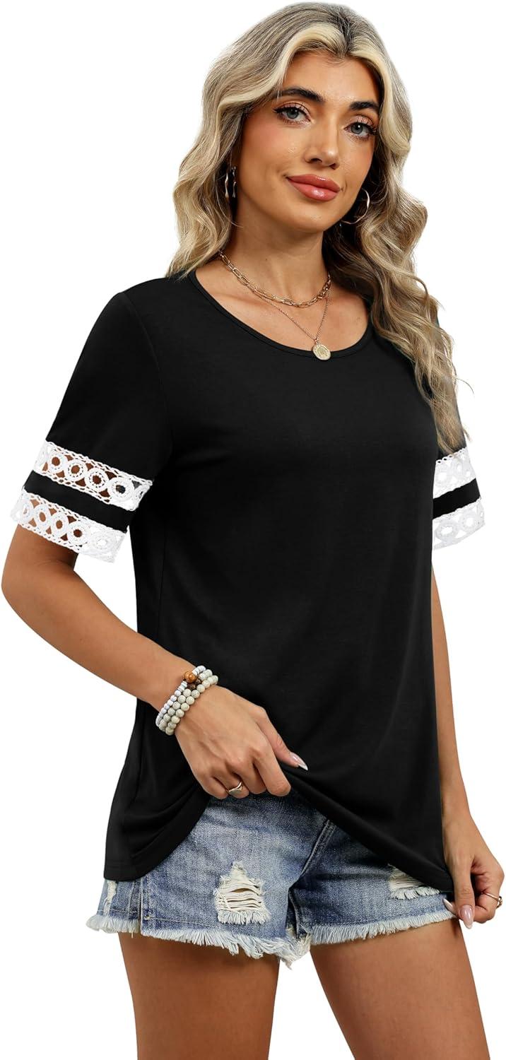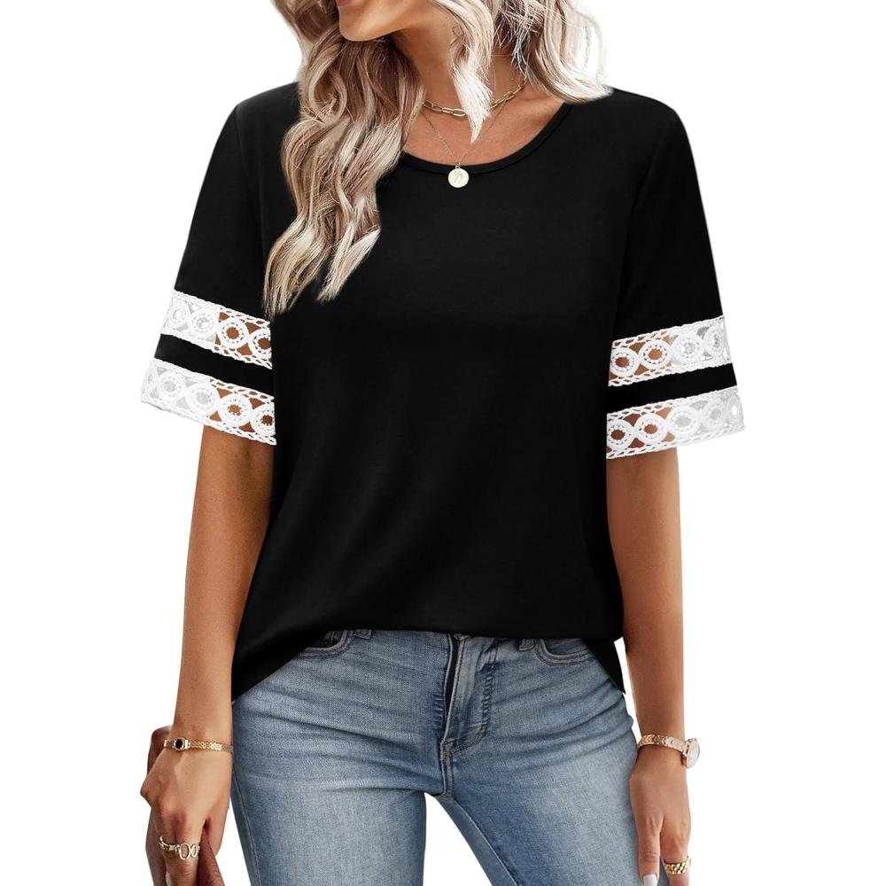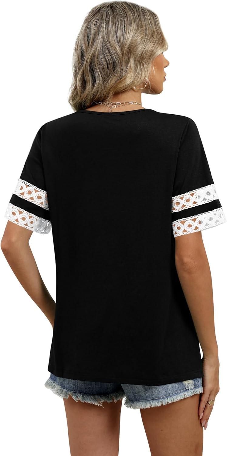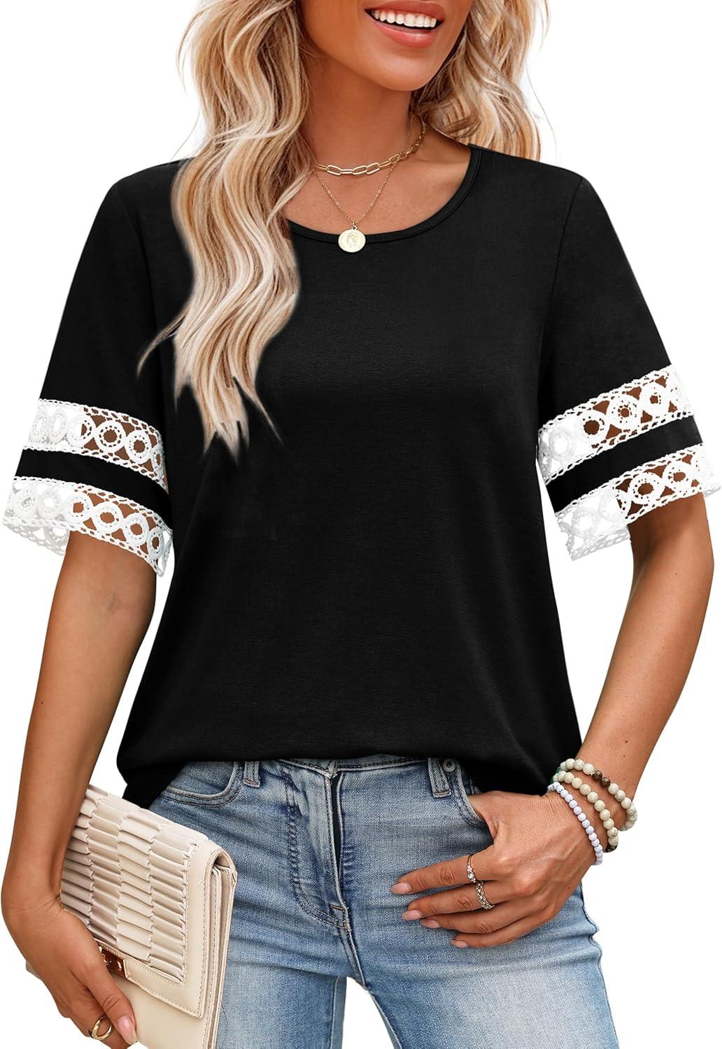 XIEERDUO Women Blouses Dressy Casual Summer Tops Color Block Short Sleeve Shirts Fashion Business Casual Outfits(Black)