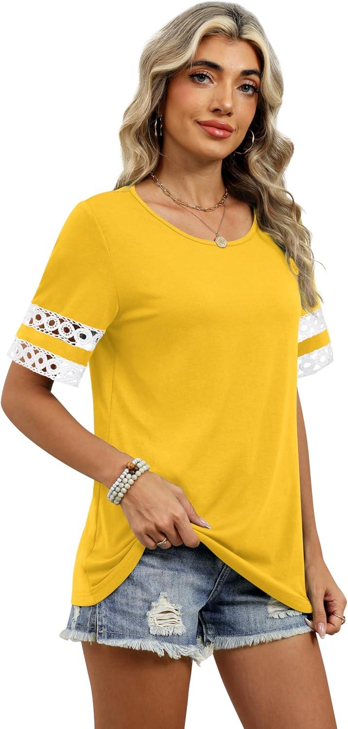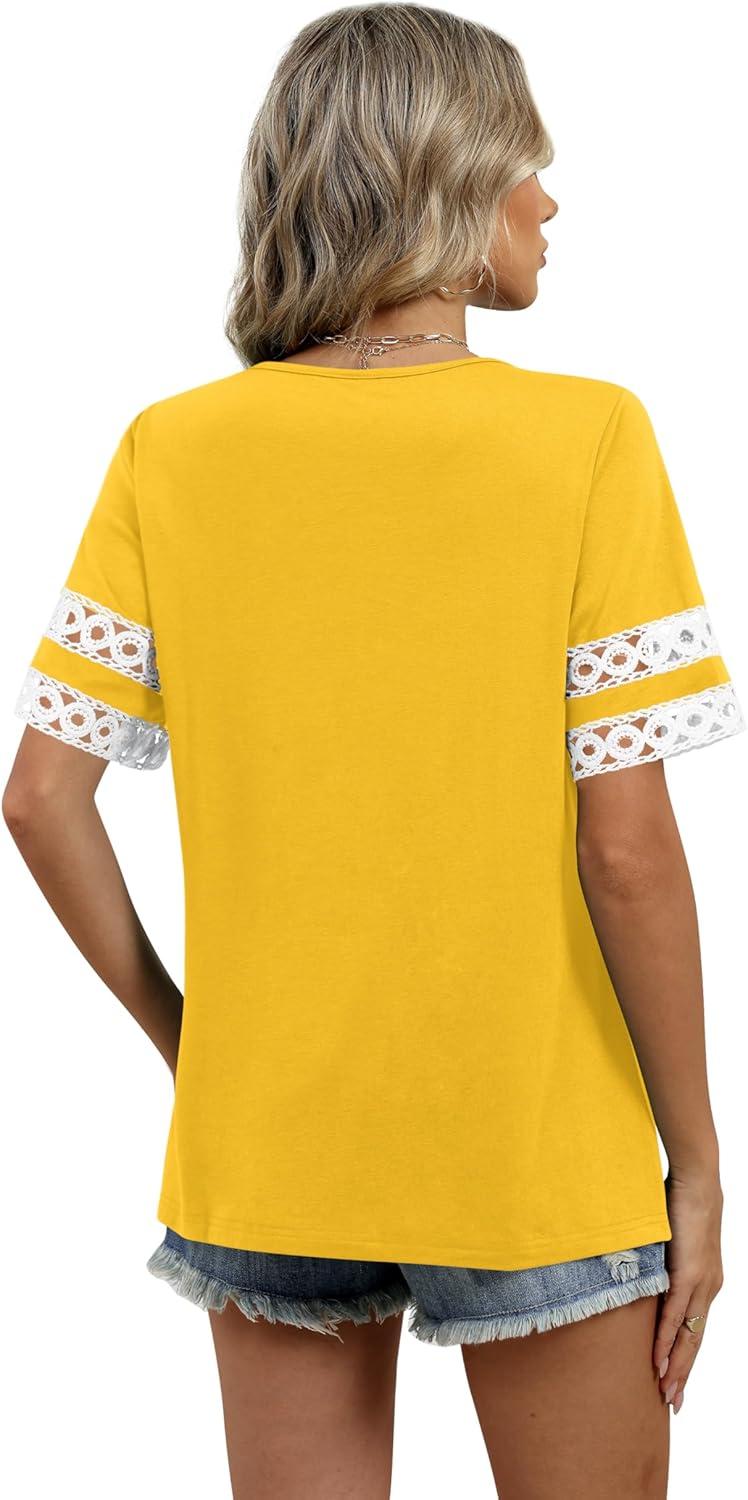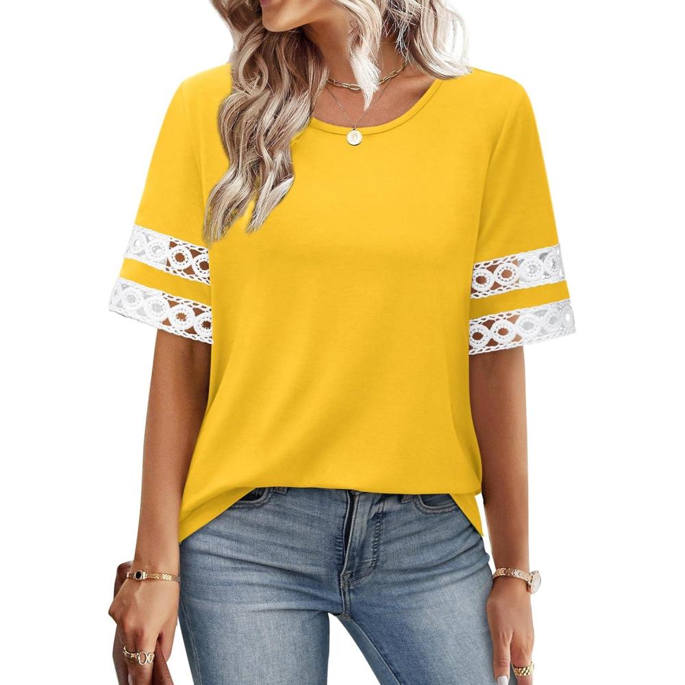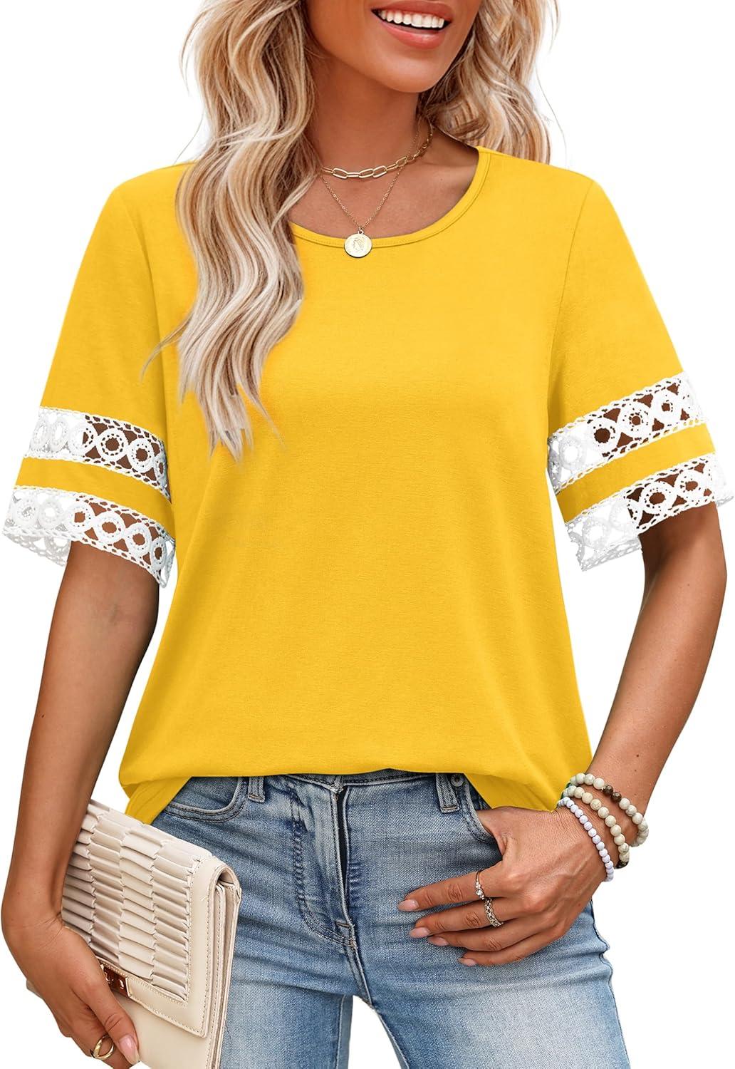 image:imageXIEERDUO Women Blouses Dressy Casual Summer Tops Color Block Short Sleeve Shirts Fashion Business Casual OutfitsYellow