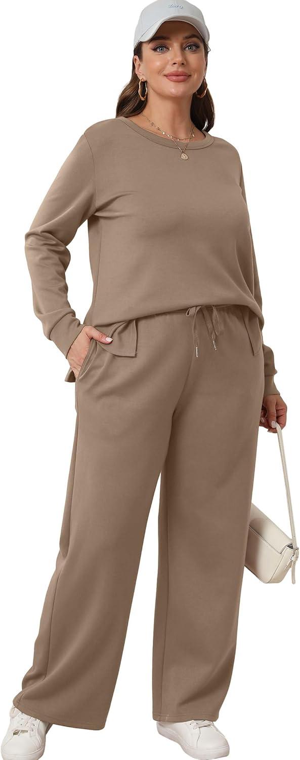 XIEERDUO Women's 2 Piece Lounge Sets Side Slit Outfits Wide Leg Tracksuit Comfy Loungewear Fashion Sweatsuit S-3XL(A Khaki)
