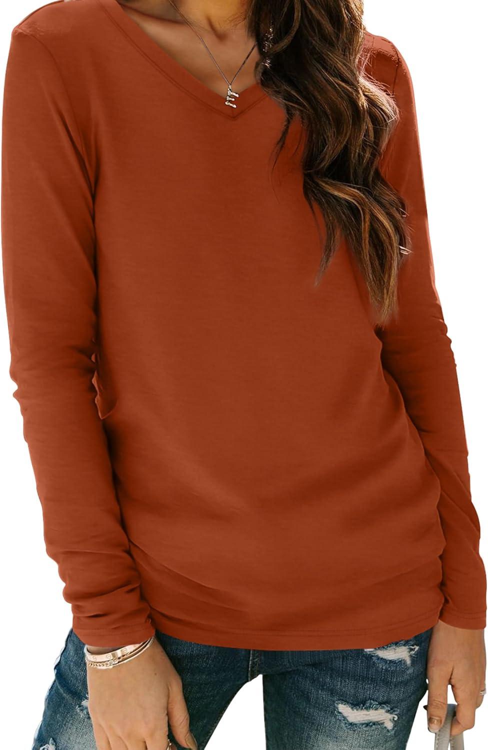 imageXIEERDUO Womens Long Sleeve ShirtsFall Tops Basic Tshirts Loose Fit V Neck 3 PacksGreyblackorange