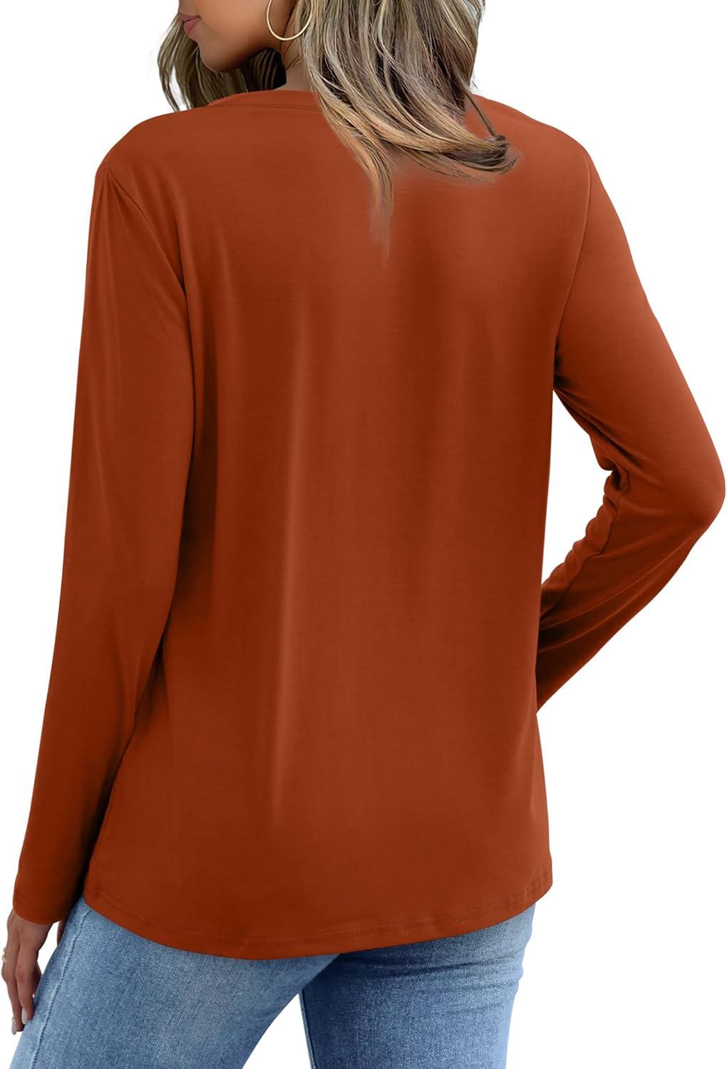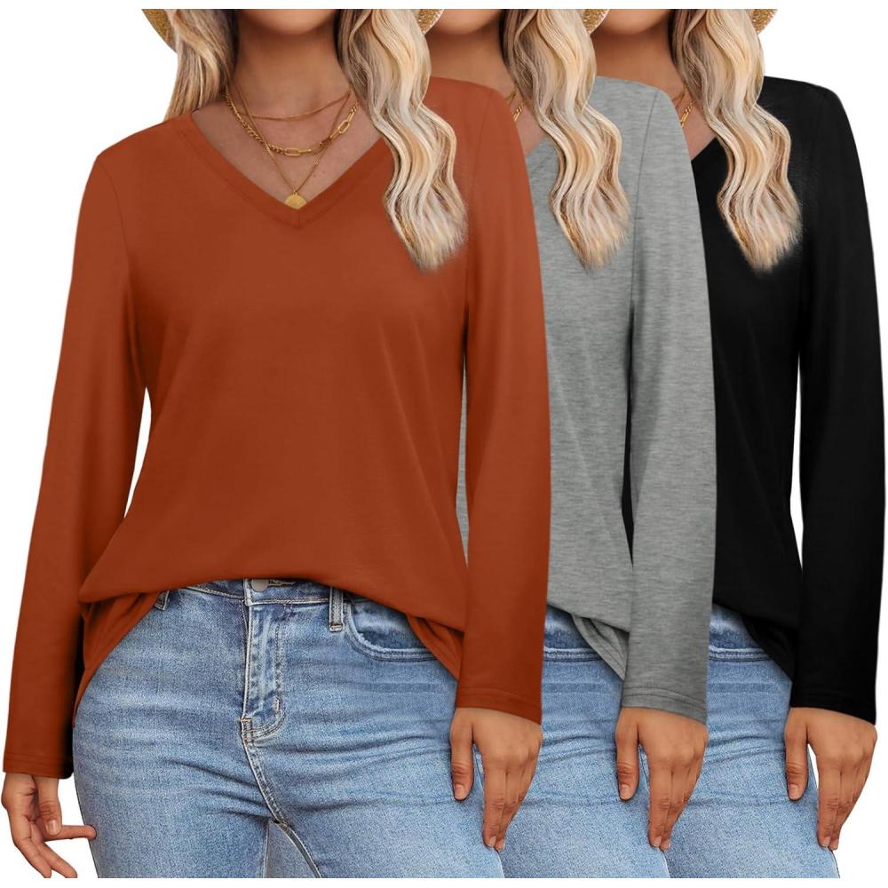 XIEERDUO Womens Long Sleeve Shirts-Fall Tops Basic Tshirts Loose Fit V Neck 3 Packs(Greyblackorange)
