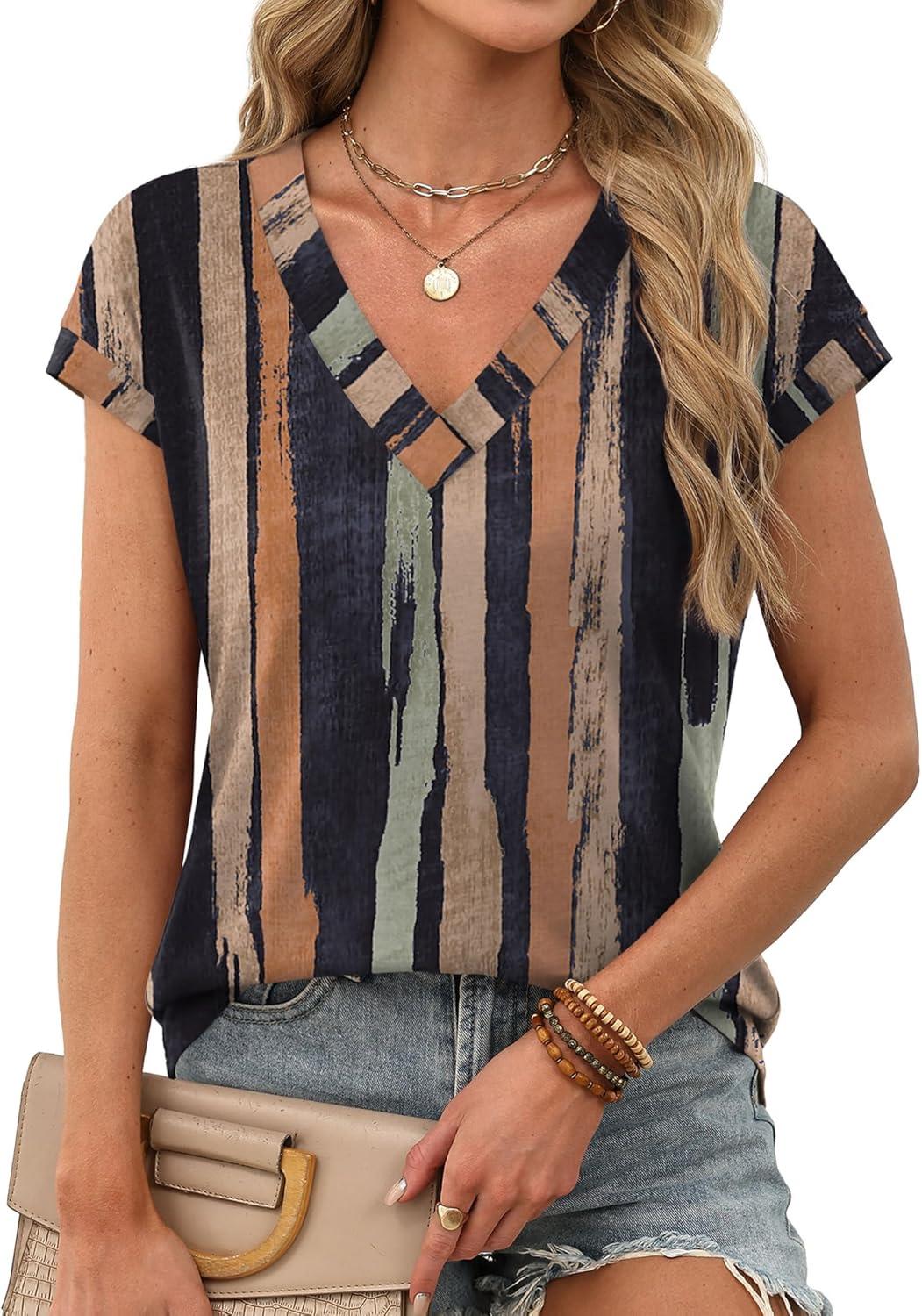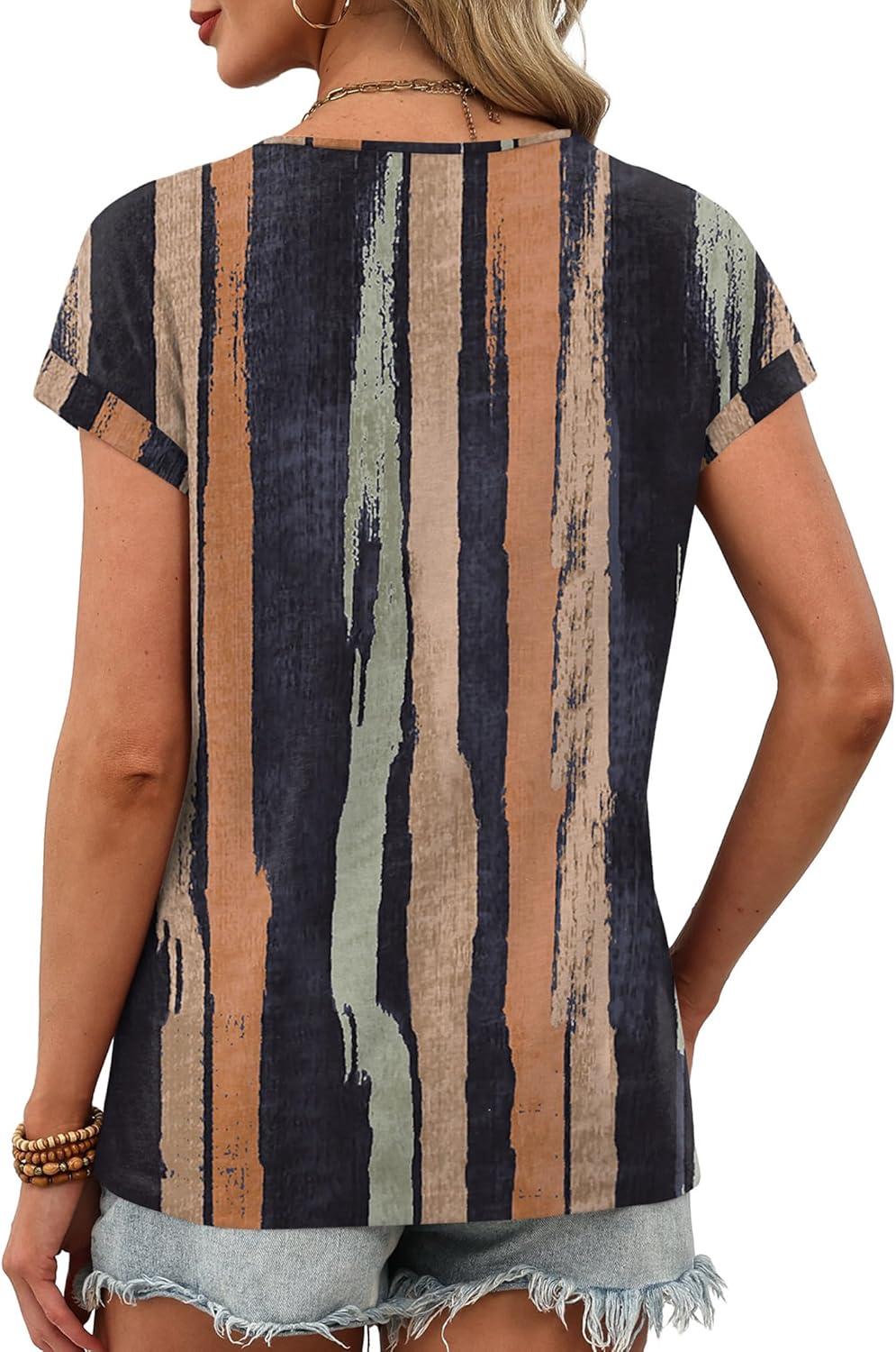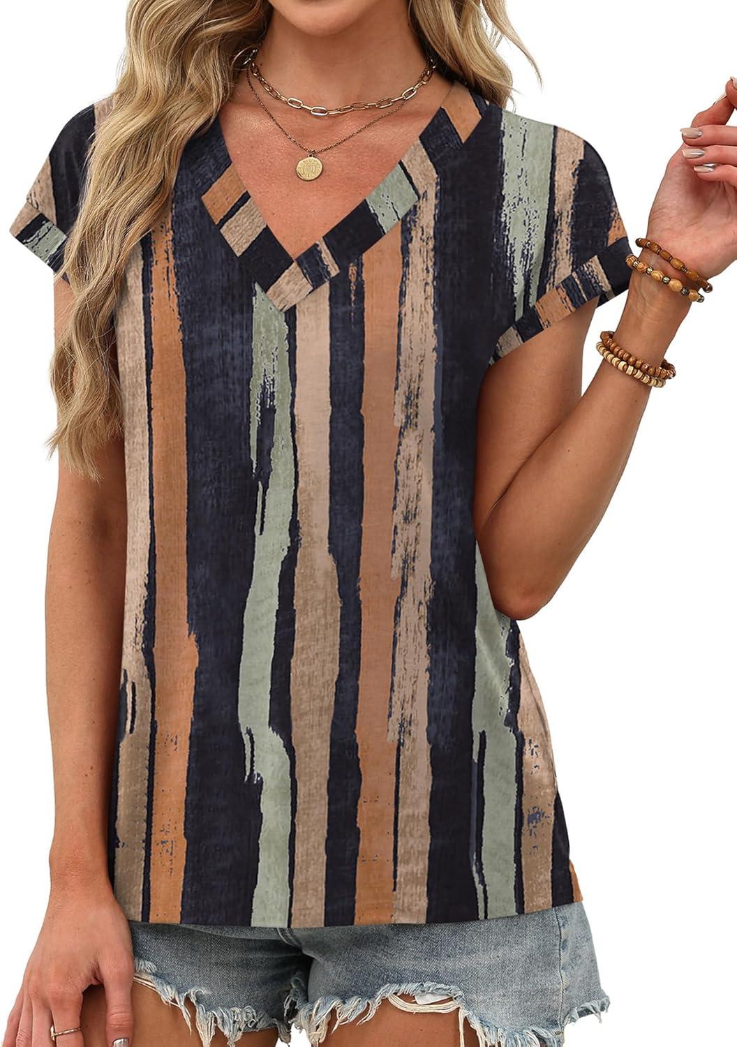 XIEERDUO Womens Summer Tops Short Sleeve Shrits 2026 Trendy V Neck Spring Outfits Beach Vacation Clothes(Patterned-tie Dye Striped)