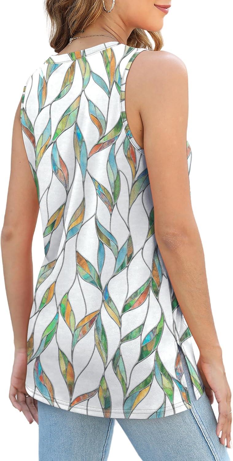 XIEERDUO Womens Tank Tops Crewneck Loose Fit Basic Casual Summer Side Split Sleeveless Shirts(D-white Print)
