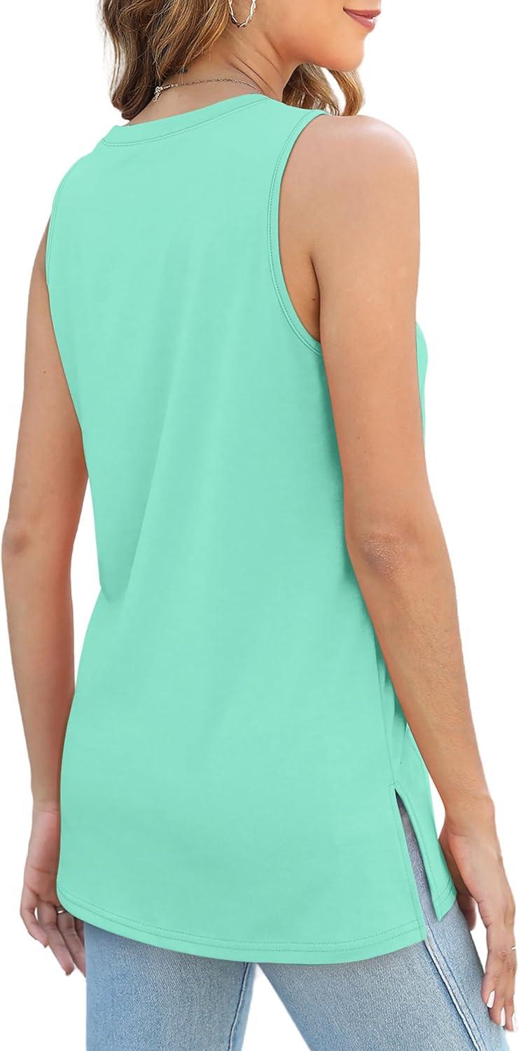 XIEERDUO Womens Tank Tops Crewneck Loose Fit Basic Casual Summer Side Split Sleeveless Shirts(O-blue Green)