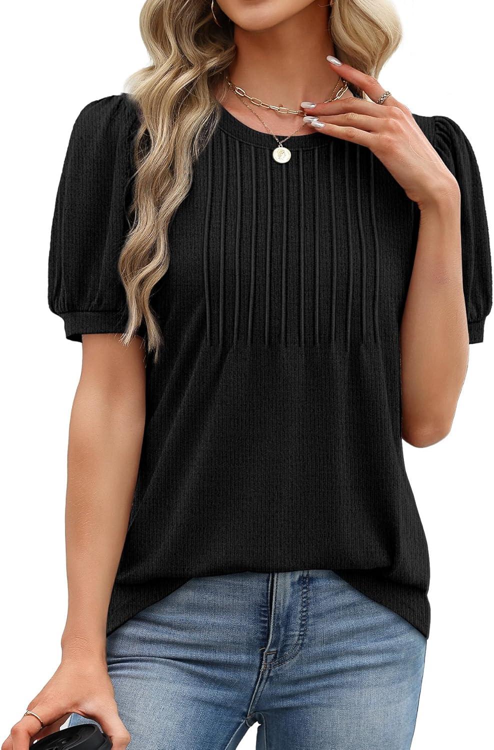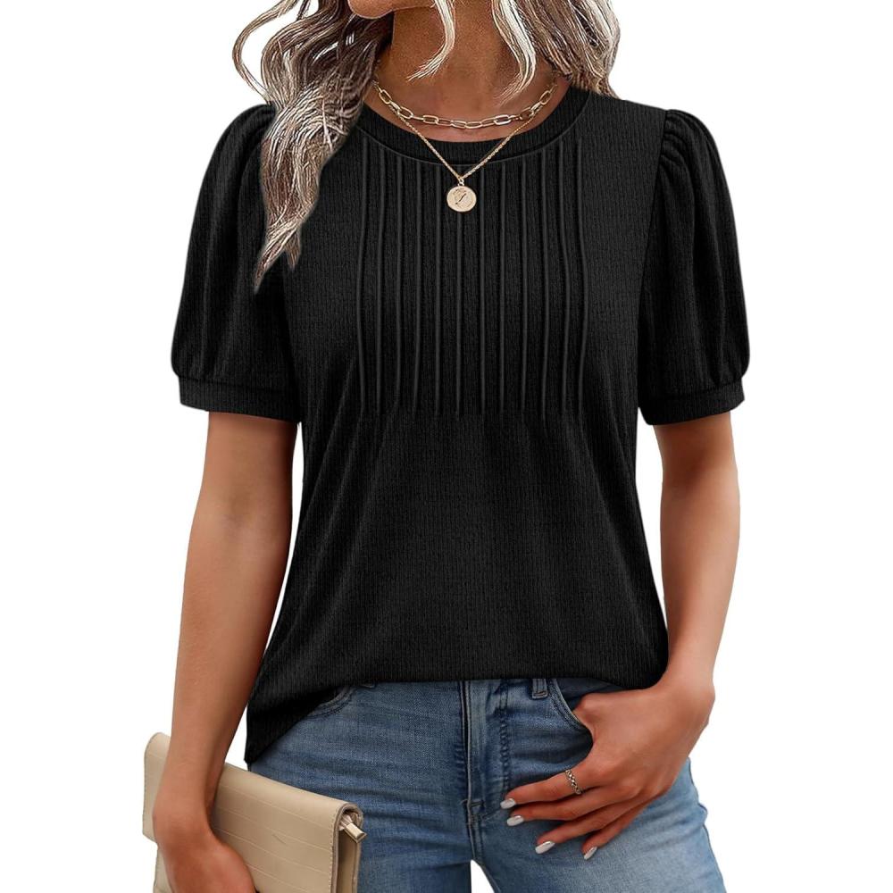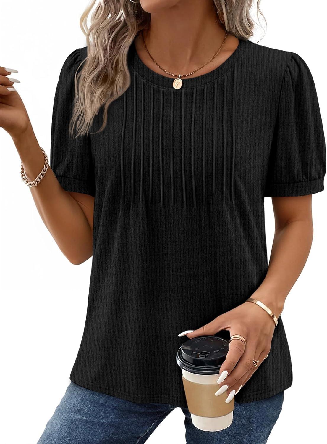XIEERDUO Womens Tops Summer Short Sleeve Sweater Dressy Casual Blouses Business Trendy Tunic Shirts Fashion Clothes 2026(Black)