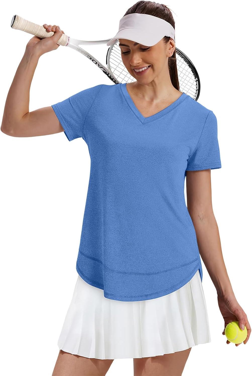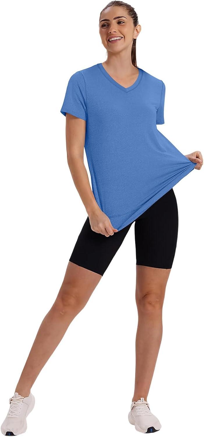 XIEERDUO Womens Workout Tops Short Sleeve Shirts Sun Protection UPF 50+ Quick Dry Outfits for Hiking Running V Neck S-3XL(04 Blue)