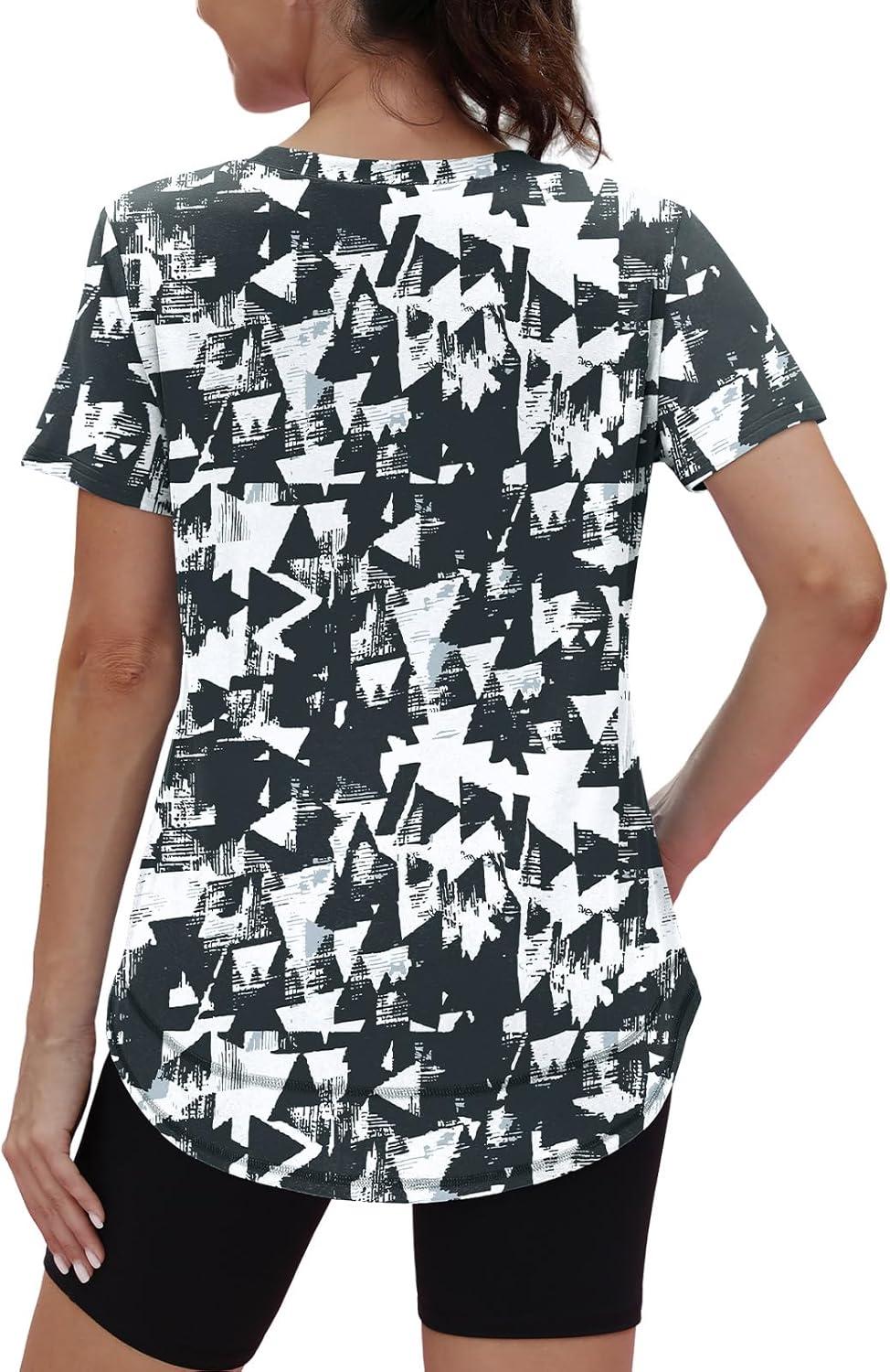 XIEERDUO Womens Workout Tops Short Sleeve Shirts with Sun Protection UPF 50+ Quick Dry Outfits for Hiking Running S-3XL(14 Black White Floral)